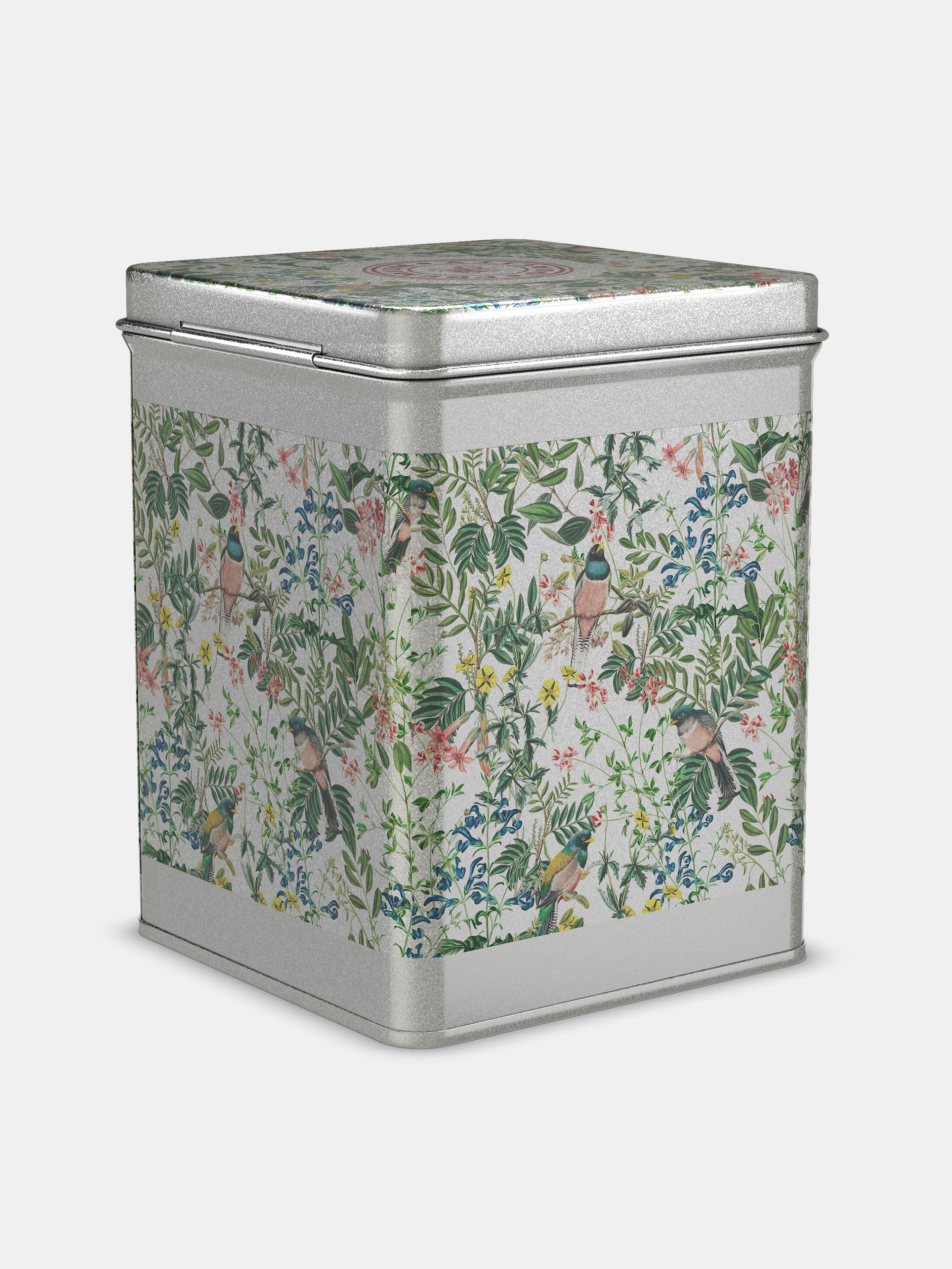 Puedes usar diseños diferentes y que la lata de té personalizada muestre un aspecto u otro según desde dónde la mires. La tapa también ofrece un espacio perfecto para el logo o un motivo decorativo.