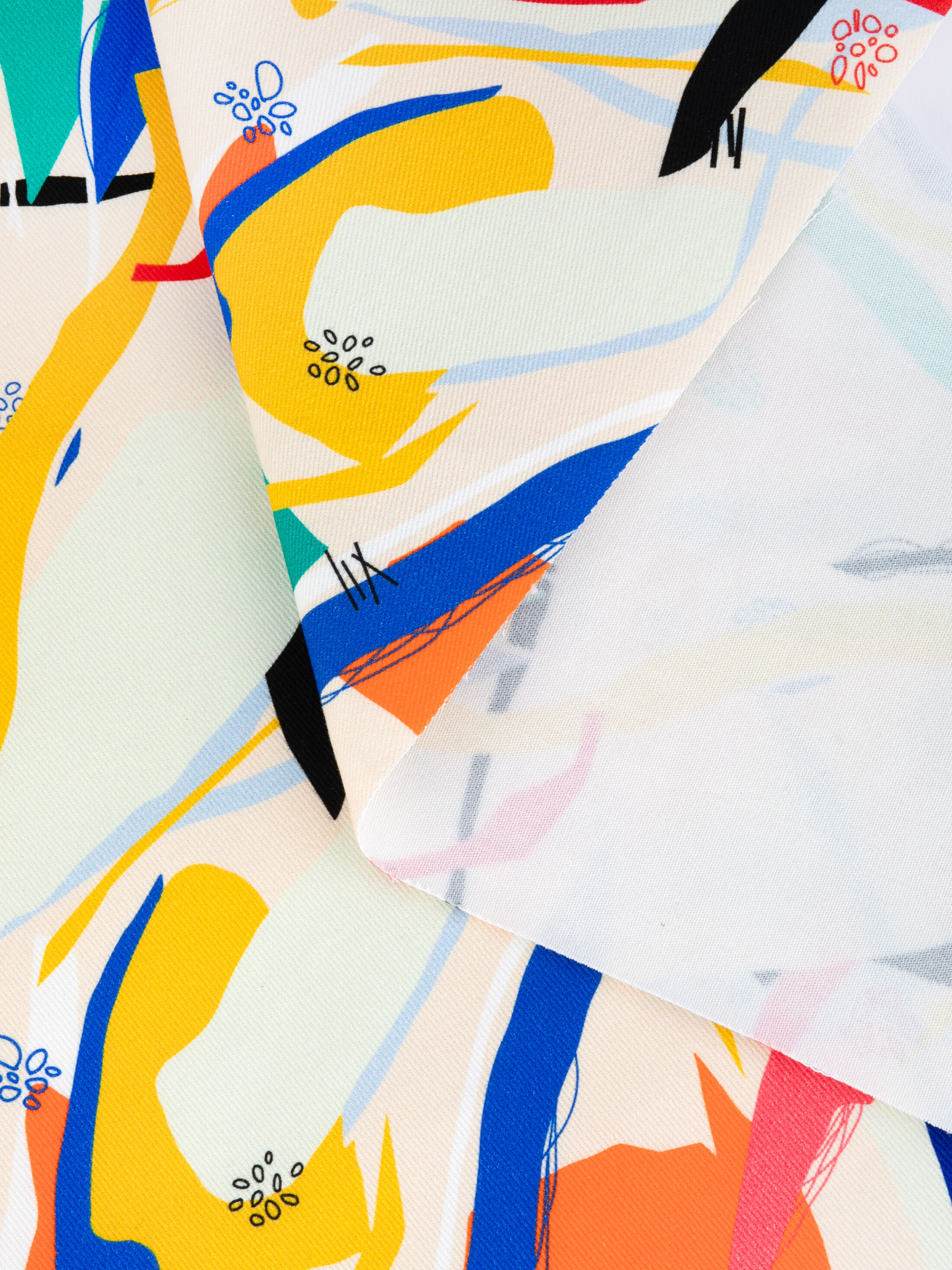 Puedes elegir tres acabados para tu tela personalizada:- Tal cual sale tras la impresión. Recibirás tu tela impresa y cortada sin precisión, es decir, con áreas blancas alrededor de margen irregular y sin dobladillos.